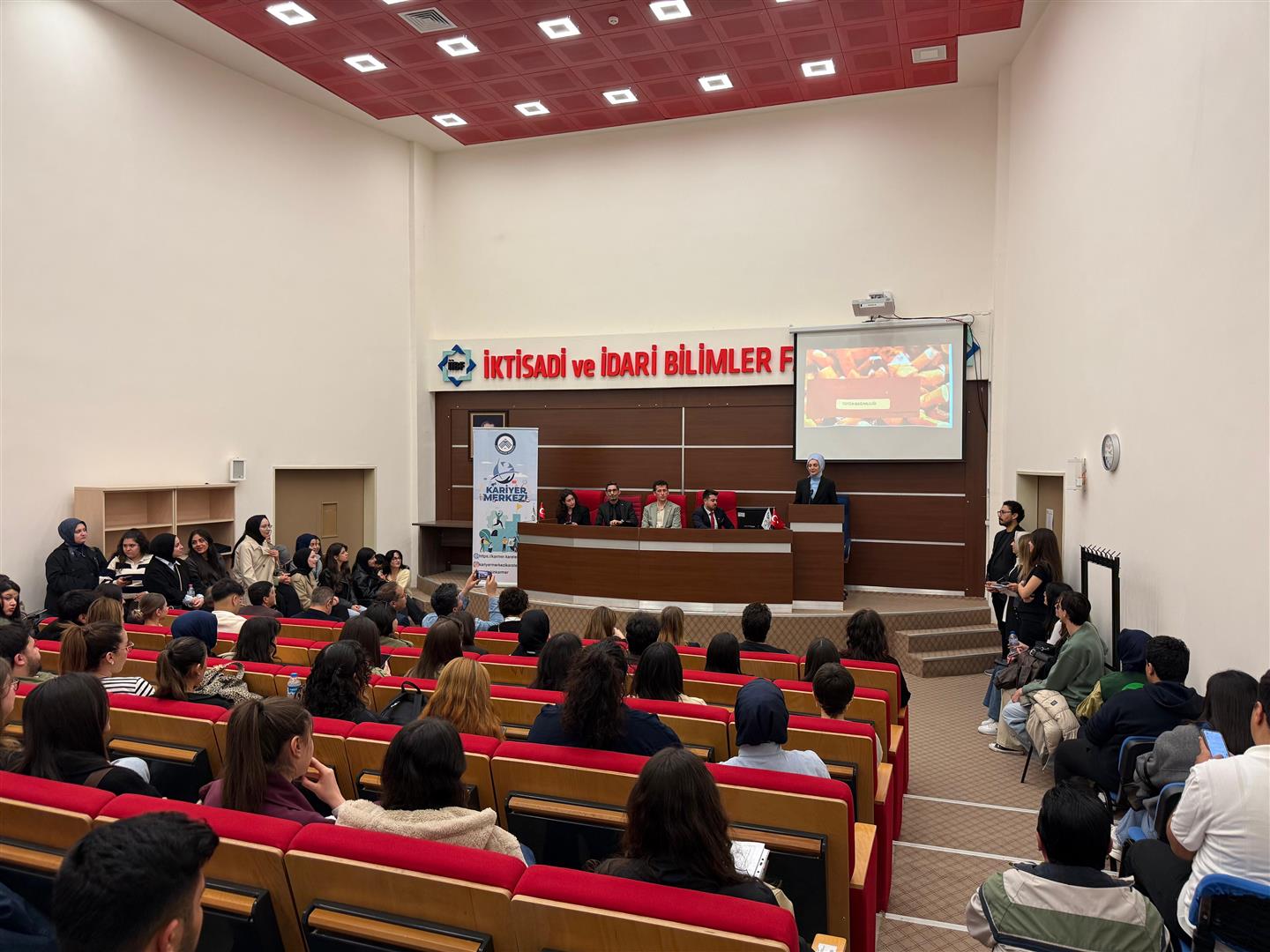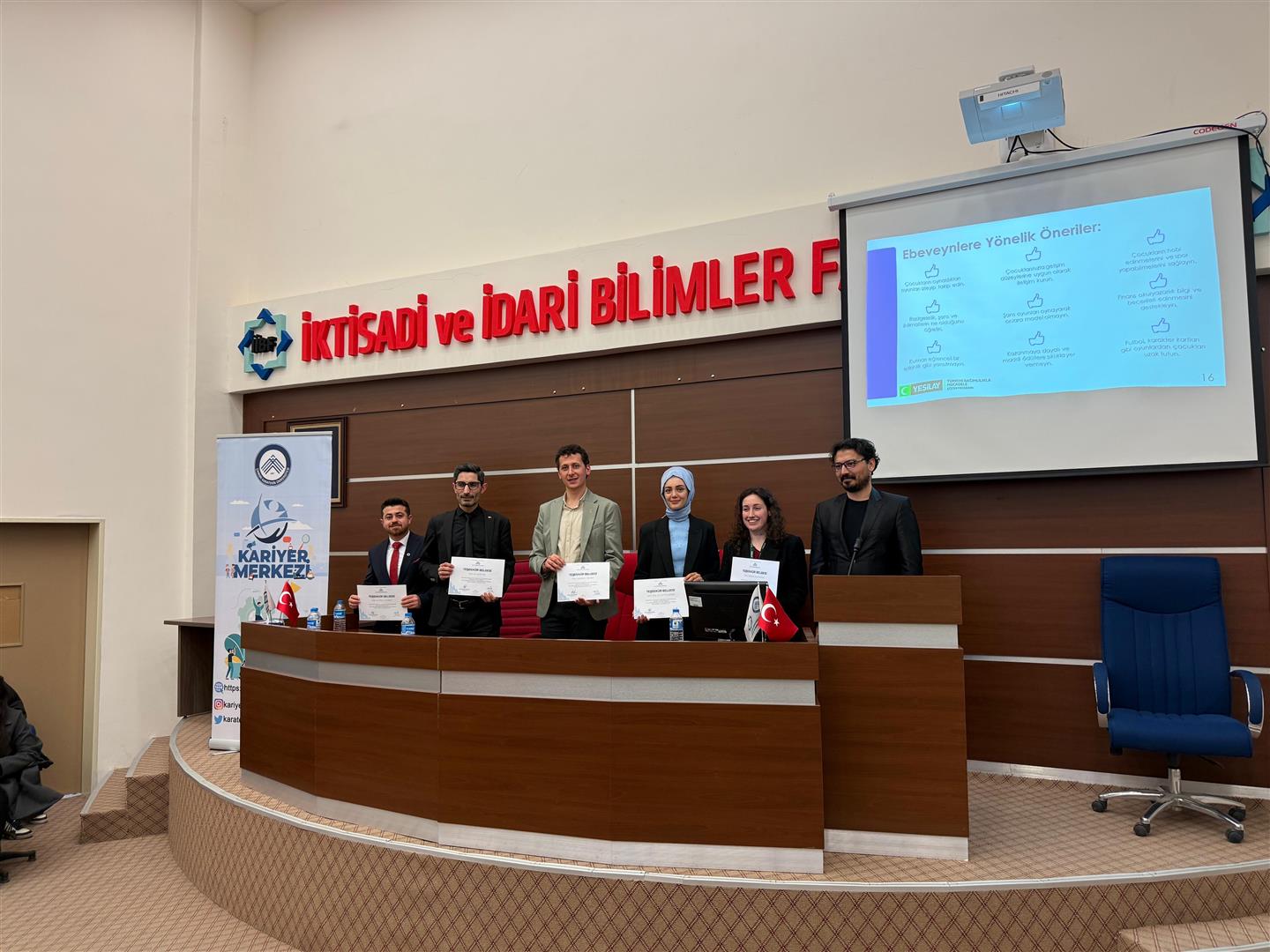Çankırı Karatekin Üniversitesi Kariyer Merkezi ile Sağlık Kültür Spor Daire Başkanlığı tarafından düzenlenen "Bağımlılığın Beş Yüzü" adlı panelde Uzm. Psk. Elif AYTEN KAYAR, Psk. Ali Muti ÇEKİRGE, Psk. Celalettin ÖZKAN, Sosyal Hizmet Uzmanları Ali KARATAŞ ve Sıla HANIM konuşmacı olarak yer aldılar.