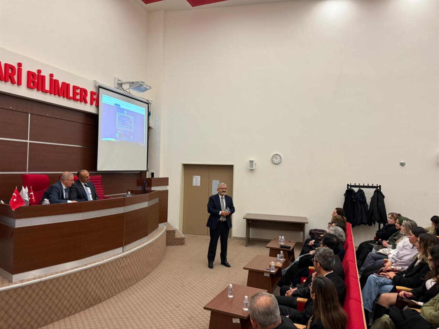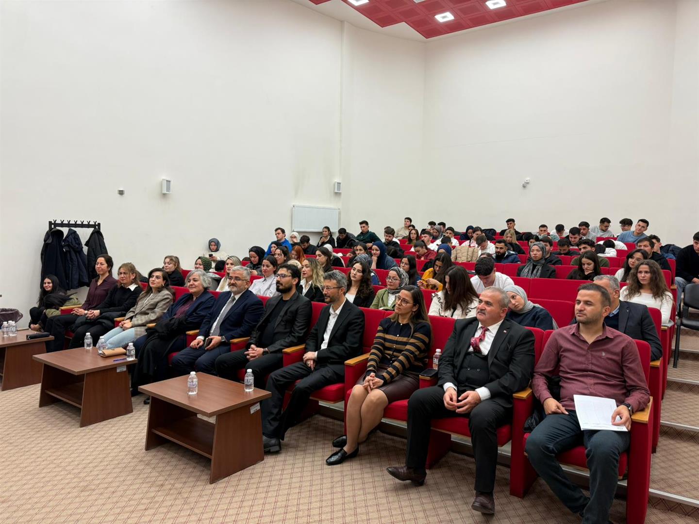 A panel titled "The Career Ladder of a Literature Teacher" was organized in collaboration with the Çankırı Karatekin University Career Center and the Turkish Language and Literature Department to mark November 24th, Teachers` Day. During the panel, Çankırı Karatekin University faculty member Assoc. Prof. Dr. Kazım ÇANDIR and Çankırı Union of Chambers and Commodity Exchanges Science High School Deputy Principal Ali CIVCAR informed students about the teaching profession and shared their experiences regarding their academic journeys.