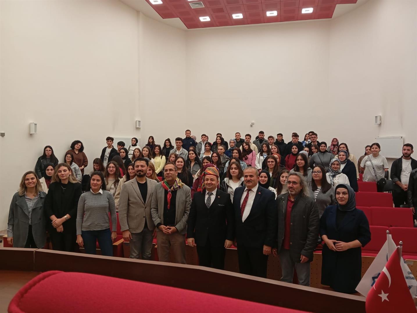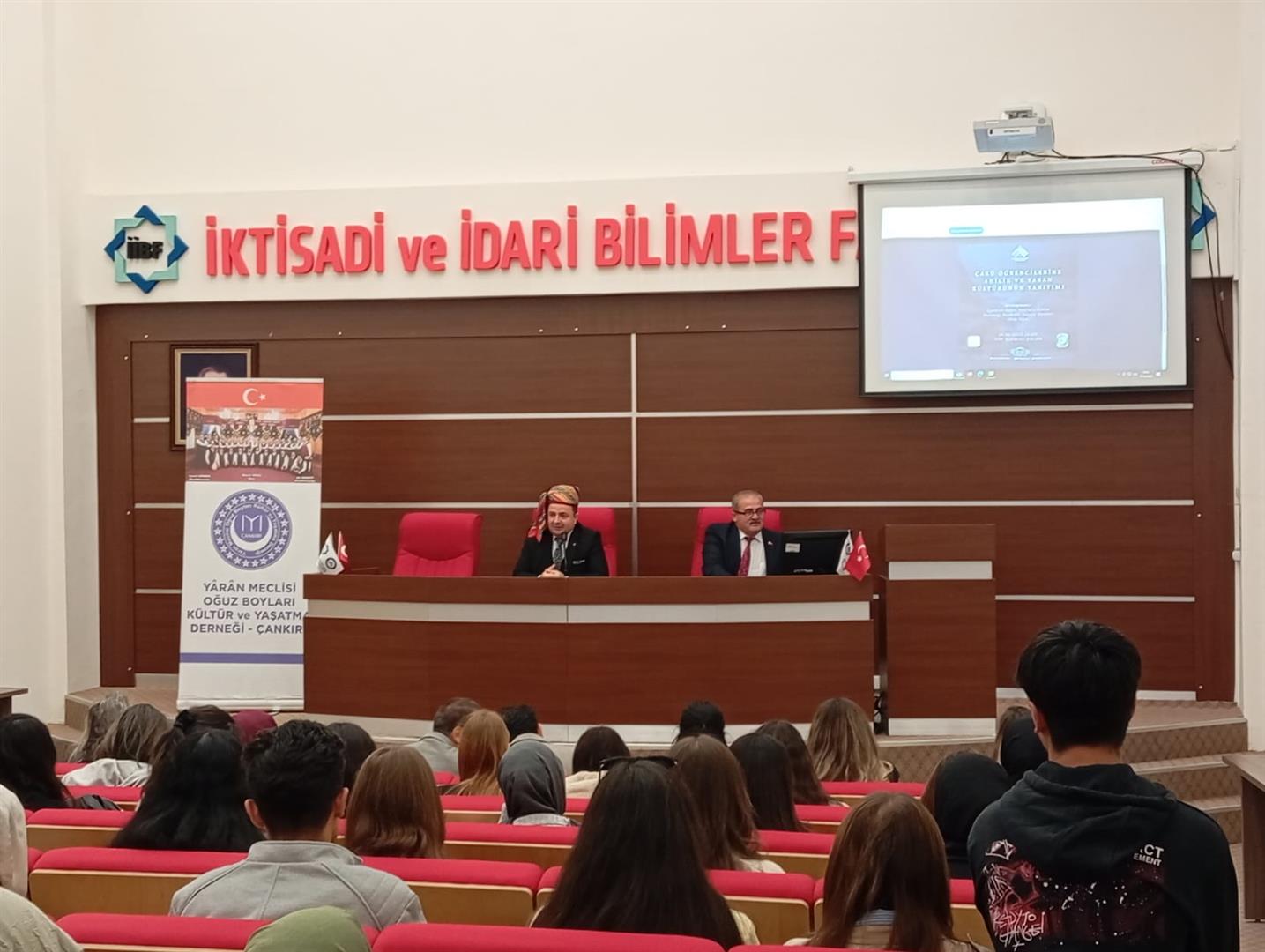 ÇAKÜ Kariyer Merkezi tarafından düzenlenen "ÇAKÜ Öğrencilerine Ahilik ve Yaran Kültürünün Tanıtımı" adlı etkinlik, 14.10.2025 Salı günü saat 14.00`te ÇAKÜ İİBF Kırmızı Salon`da gerçekleştirildi. Yaran Baş Ağası Recep DENECİ`nin konuşmacı olarak katıldığı etkinlikte katılımcılara Ahi ve Yaran kültürlerinin geçmişten günümüze değişimi, dönüşümü ve işlevleri hakkında bilgiler verildi. Yoğun bir katılımcı ilgisiyle karşılanan etkinlikte Yaran folkloru, Yaran dayanışması ve toplumda Yaran birliğinin önemi gibi konularda dinleyiciler ayrıntılı bilgi sahibi olma imkânına sahip oldu.